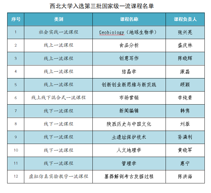 日前,教育部公布第三批国家级一流本科课程认定名单。我院刘蓉教授负责的《陕西历史与中国文化》课程入选。